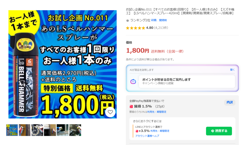 楽天のベルハンマーショップで最高級?の極圧潤滑剤が安く買えるとか。
